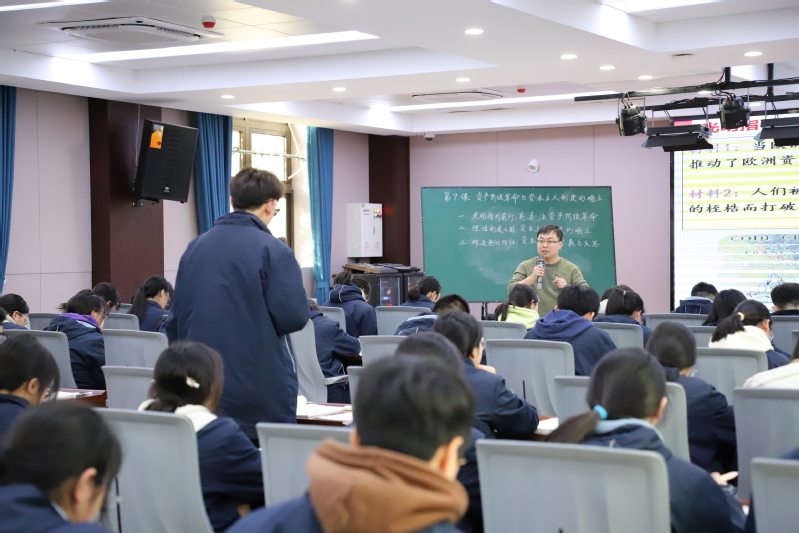 为贯彻落实新课程理念,提升我市历史教育教学水平,助力青年教师发展,3月18日,徐州市高中历史青年教师培训暨“同课异构”活动在我校举行。徐州市教育科学研究院高中历史教研员杨竟、市区各高中学校五年内入职青年历史教师、徐州市第三十六中学历史教研组全体教师参会。本次活动共分两个环节:一是我校胡丹丹和郭启节两位教师同上一节课——《资产阶级革命与资本主义制度的确立》,二是进行评课议课。