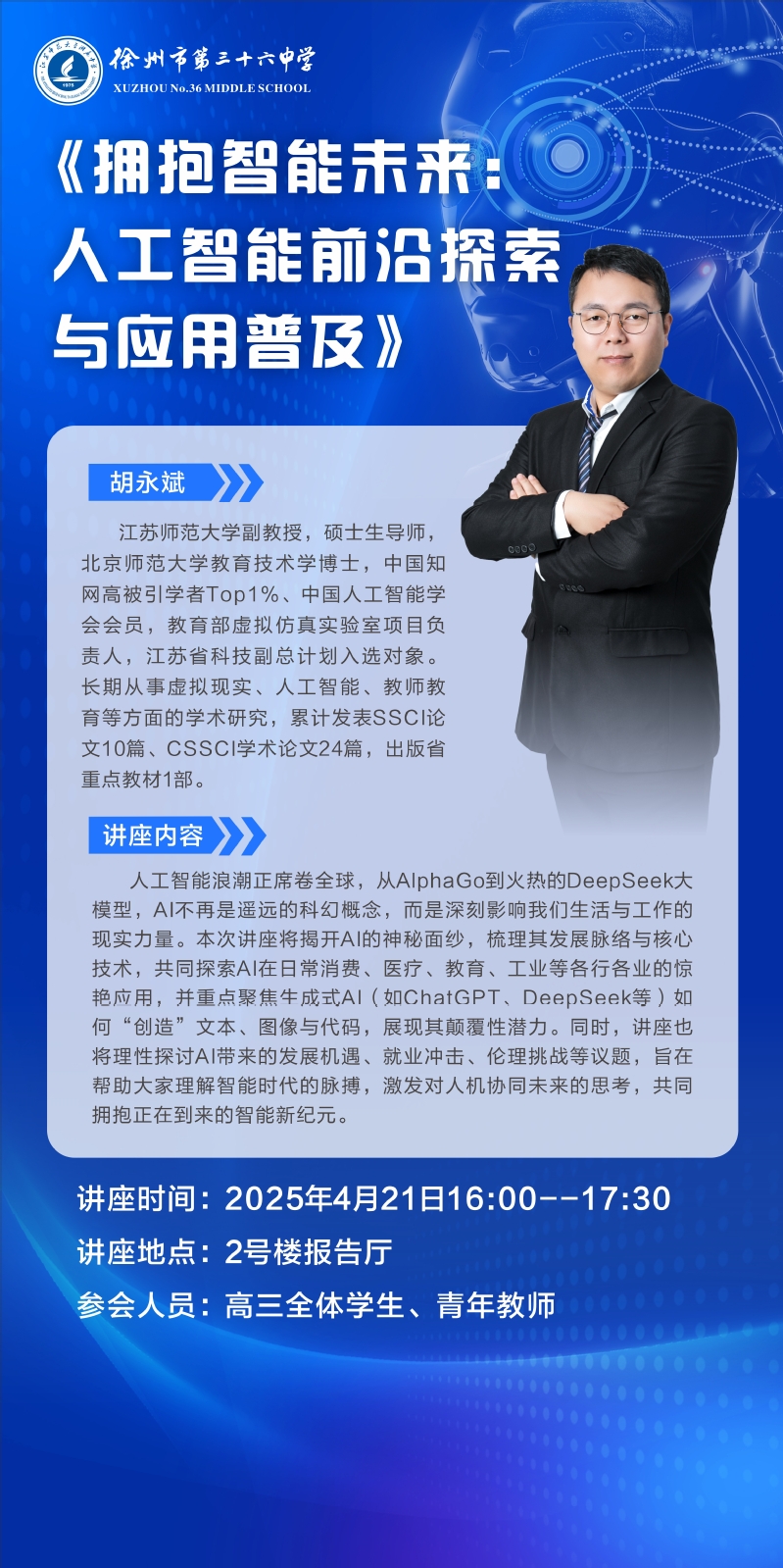 讲座预告:《拥抱智能未来:人工智能前沿探索与应用普及》