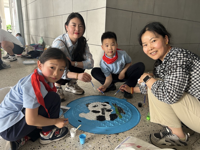 活动现场,孩子们充分发挥想象力,用充满童趣的笔触在井盖上勾勒出一幅幅生动的画面,家长们则在一旁耐心指导,帮助孩子调色、填色,与孩子共同讨论画面构思,现场洋溢着温馨和谐的氛围。