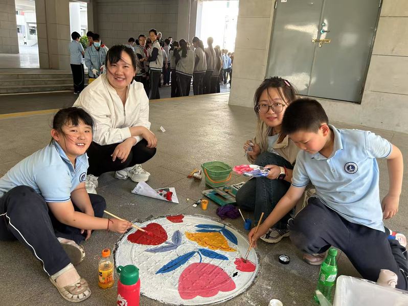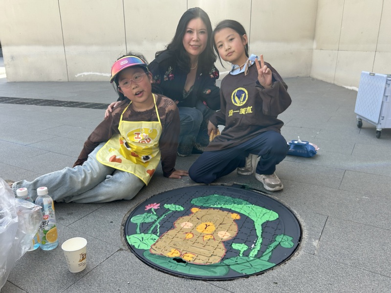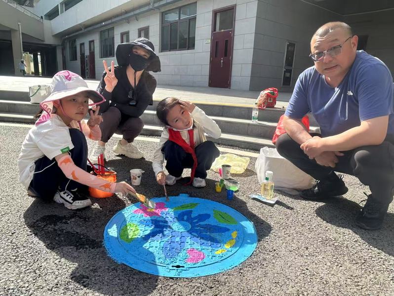 经过数小时的努力,校园里的井盖焕然一新。这些作品不仅美化了校园环境,更承载着家长与孩子共同创作的美好回忆,成为家校共育的生动见证。路过的师生不禁停下脚步,或俯身细看憨态可掬的卡通动物,或举起手机记录色彩斑斓的星空井盖,赞叹声此起彼伏。