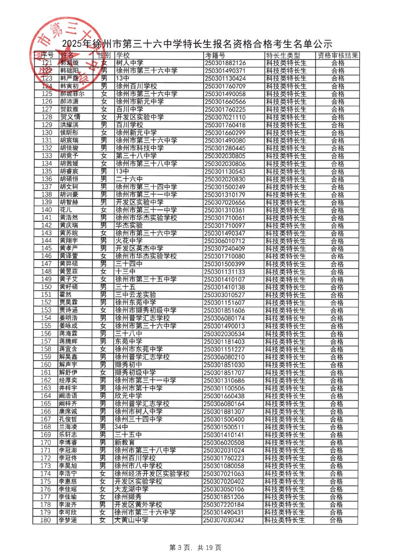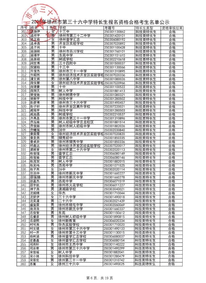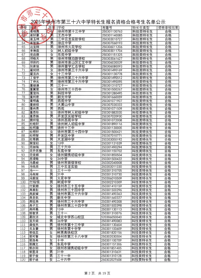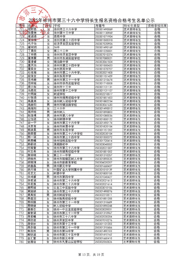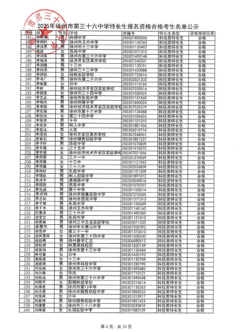 徐州市第三十六中学2025年科技和艺术特长生资格审核公告