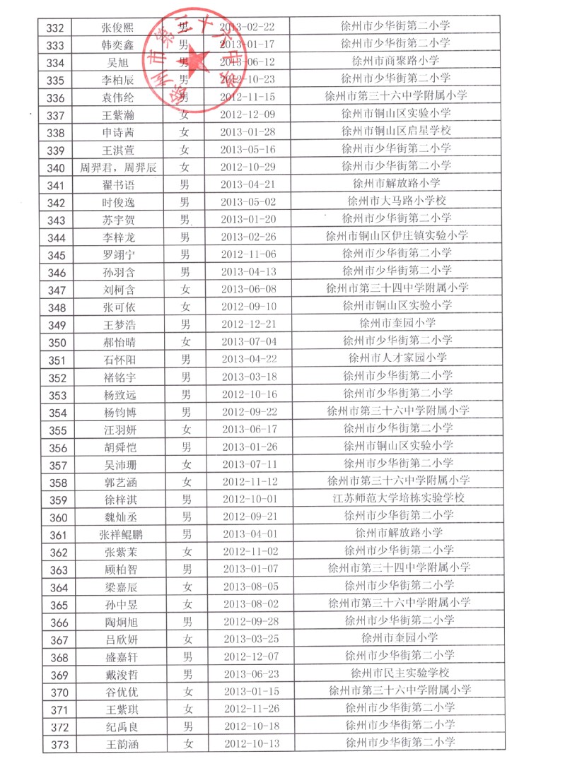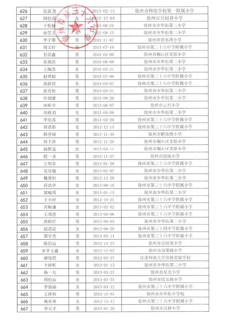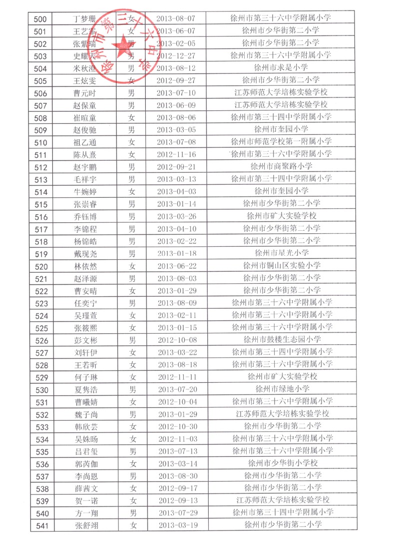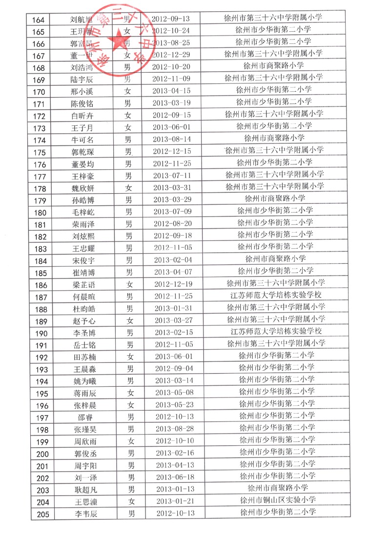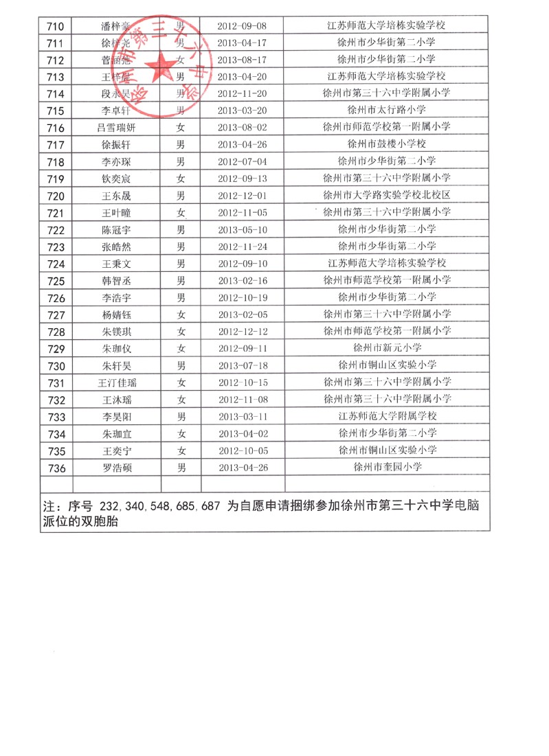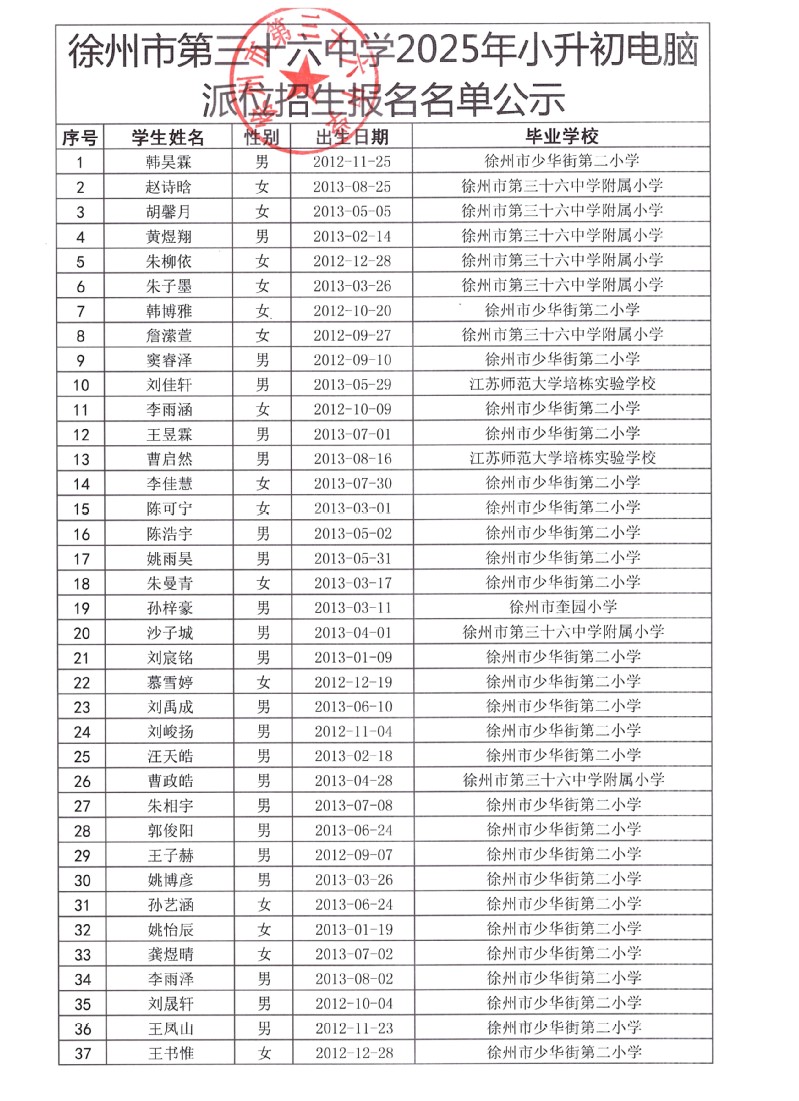 徐州市第三十六中学2025年小升初电脑派位招生报名名单公示