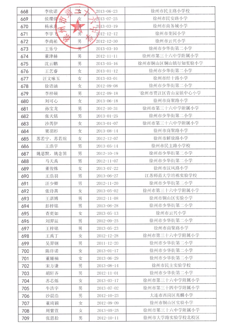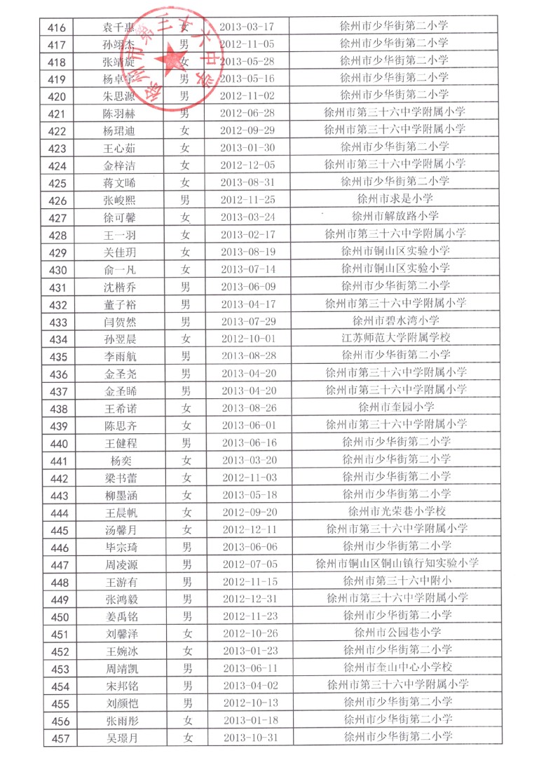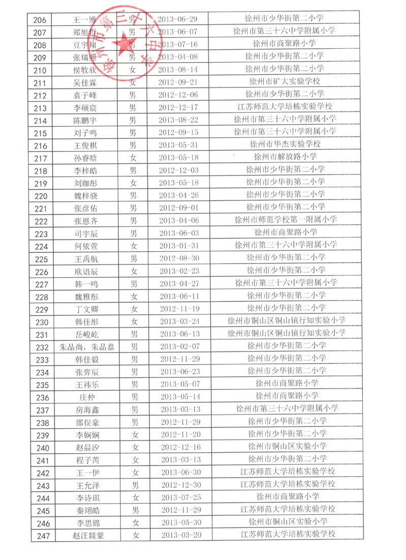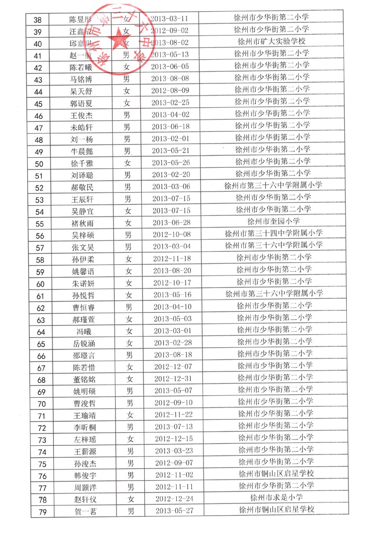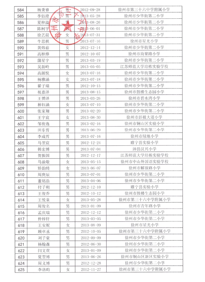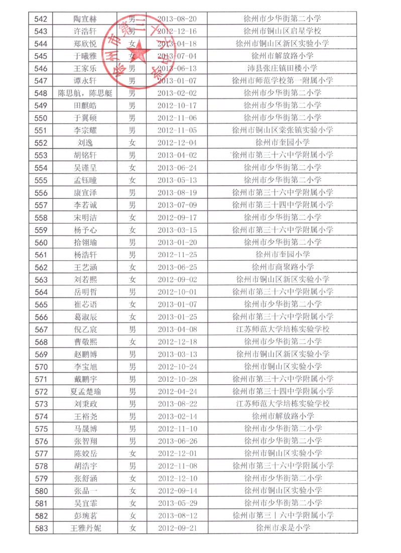 徐州市第三十六中学2025年小升初电脑派位招生报名名单公示