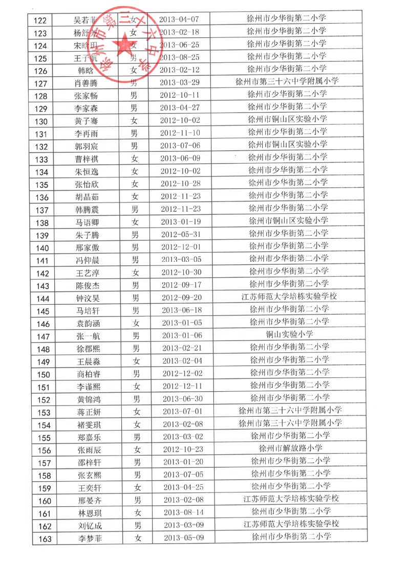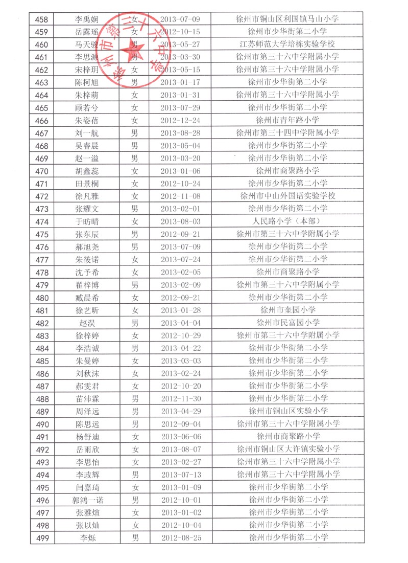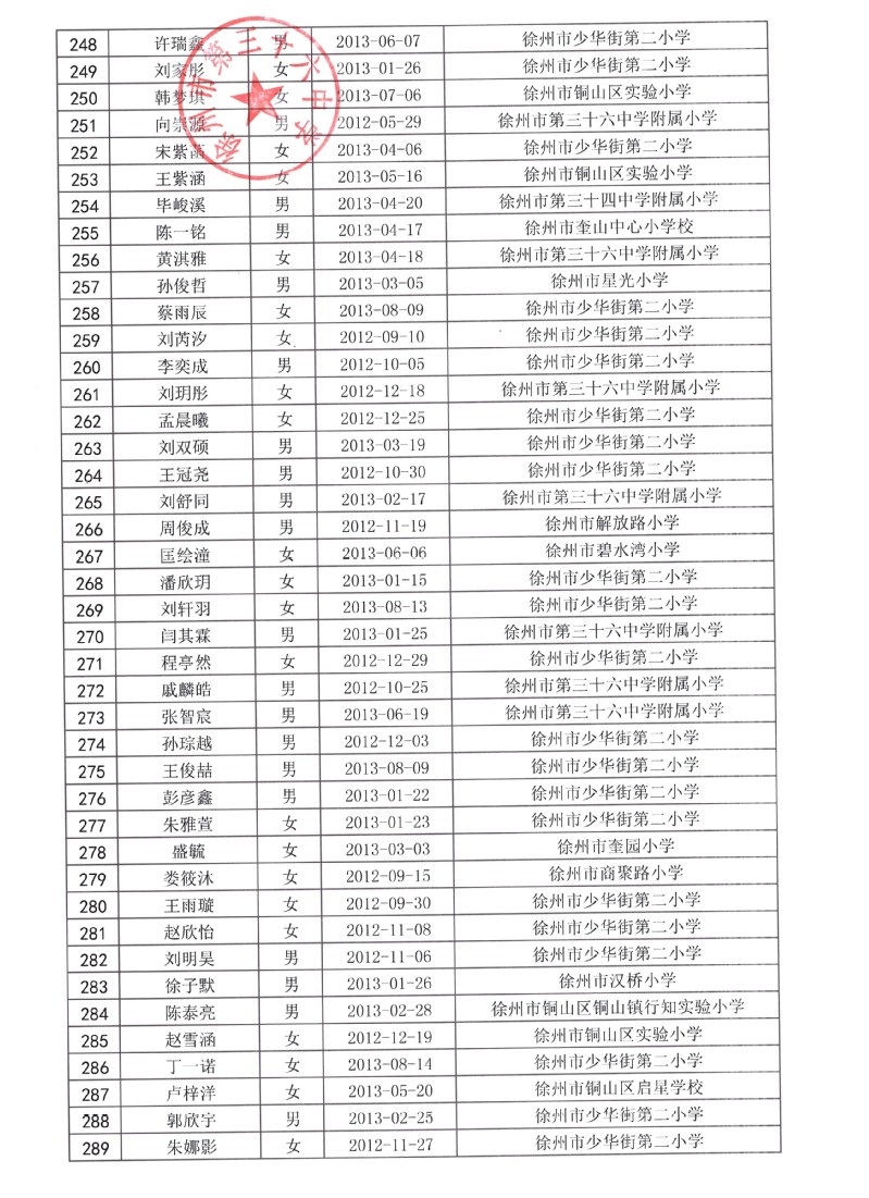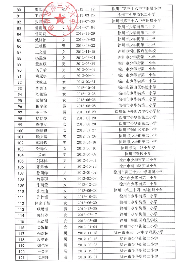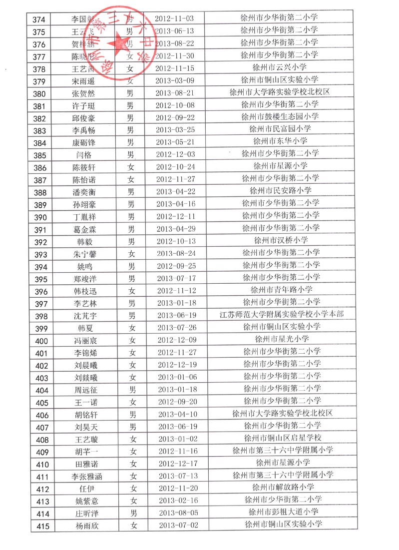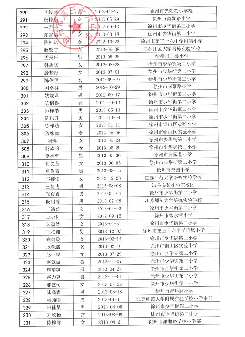 徐州市第三十六中学2025年小升初电脑派位招生报名名单公示