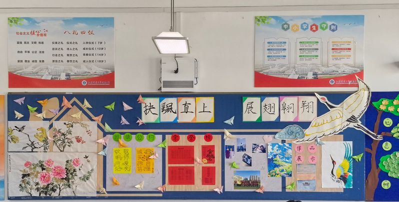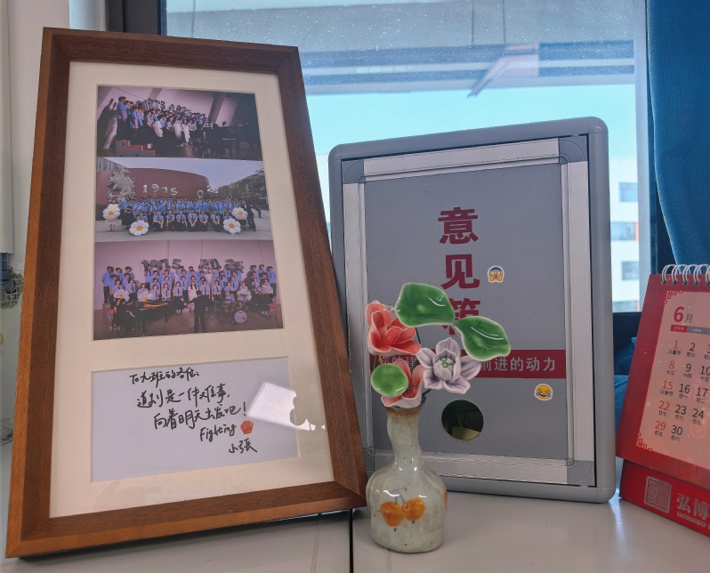 九班的教室处处彰显独特的班级氛围:教室设有“荣耀展窗”,如同班级的“高光时刻收藏夹”,集体获得的各项荣誉皆陈列于此,每一次驻足观看,都能让同学们感受到集体努力的成果,激发更强的奋进动力。旁边的“心愿树”上挂满了同学们写下的心愿与目标,既有对个人成长的期许,也有对班级发展的美好祝愿。当大家共同努力让“班级愿望”逐一实现,攒满5个愿望时,还能兑换全班“电影局”,这份共同的期待与喜悦,成为凝聚班级力量的重要纽带。