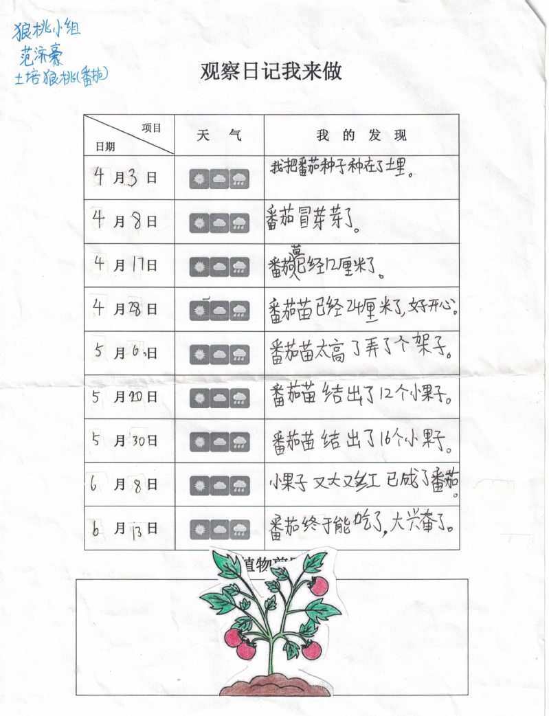 为了更好地观察植物生长的过程,学生们还精心填写了“观察日记我来做”,让我们一起来欣赏学生们的劳动成果吧!