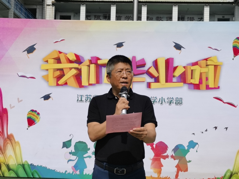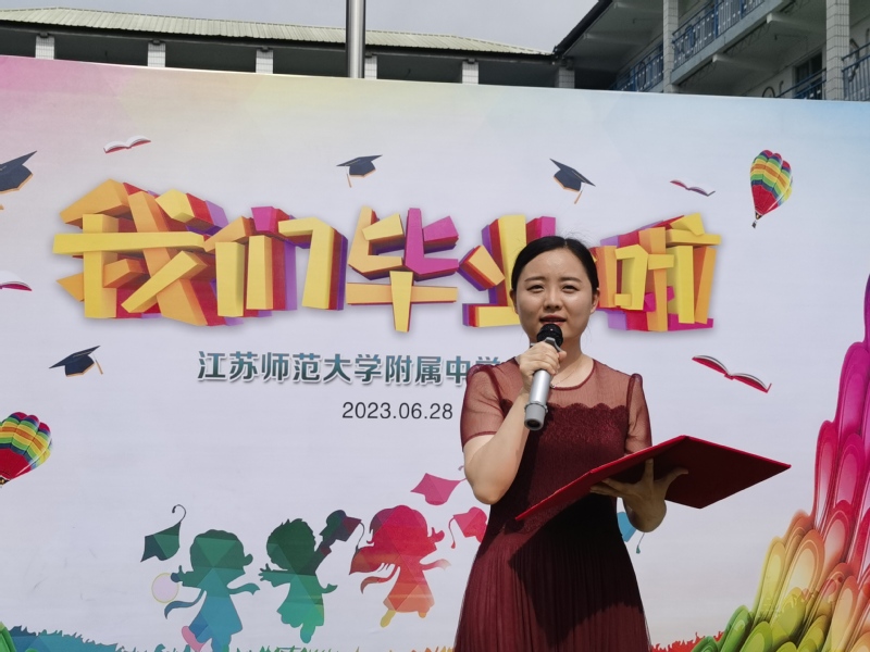首先,江苏师范大学附属中学副校长刘兵致辞,表达了对即将离校的孩子们的不舍,意味深长、热情洋溢的话语,鼓励着同学们走向更好更高的目标。刘校长对孩子们提出了三点希望:一、追逐梦想,立志高远。二、成功之路,勤奋读书。三、胸怀宽广,真诚善良。相信无论走到哪儿,孩子们都会将刘校长的教导铭记在心,在以后的学习生活中拥有好习惯,好品德,胸怀宽广、真诚善良。