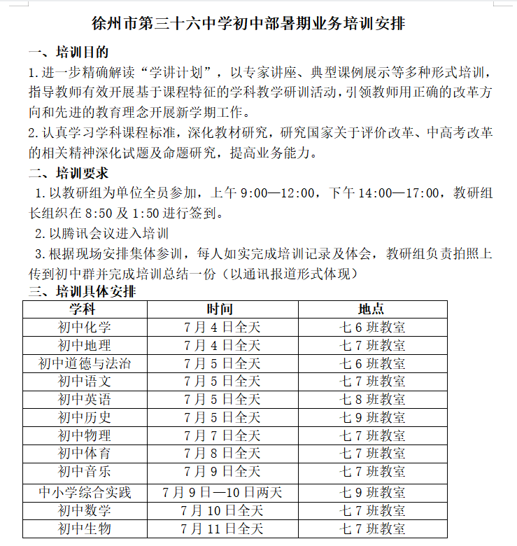 以培促思,砥砺前行。为进一步精确解读“学讲计划”,以专家讲座、典型课例展示等多种形式指导教师有效开展基于课程特征的学科教学研训活动,引领教师用正确的改革方向和先进的教育理念开展新学期工作,促进教育质量提升,江苏师范大学附属中学初中部在学期末就已经精心安排,于2023年7月4日至7月11日组织教师们参加了徐州市教师暑期业务能力线上培训活动。