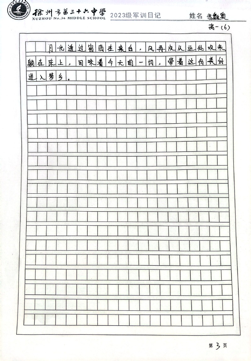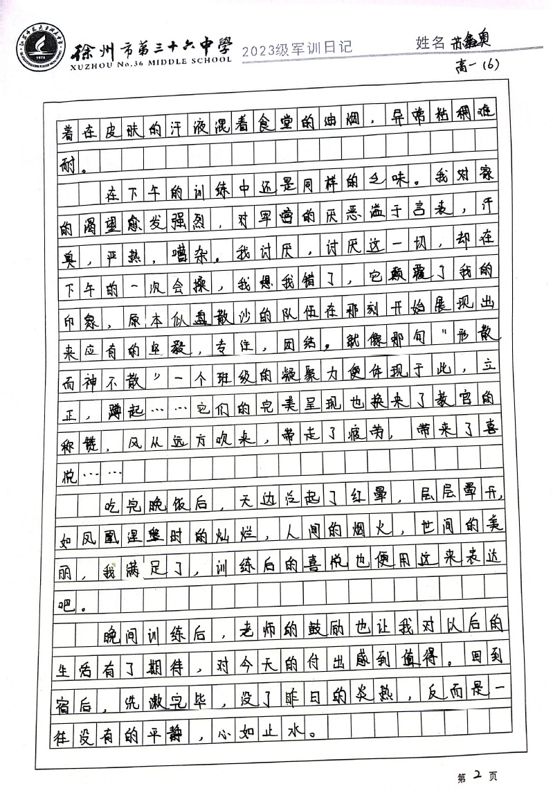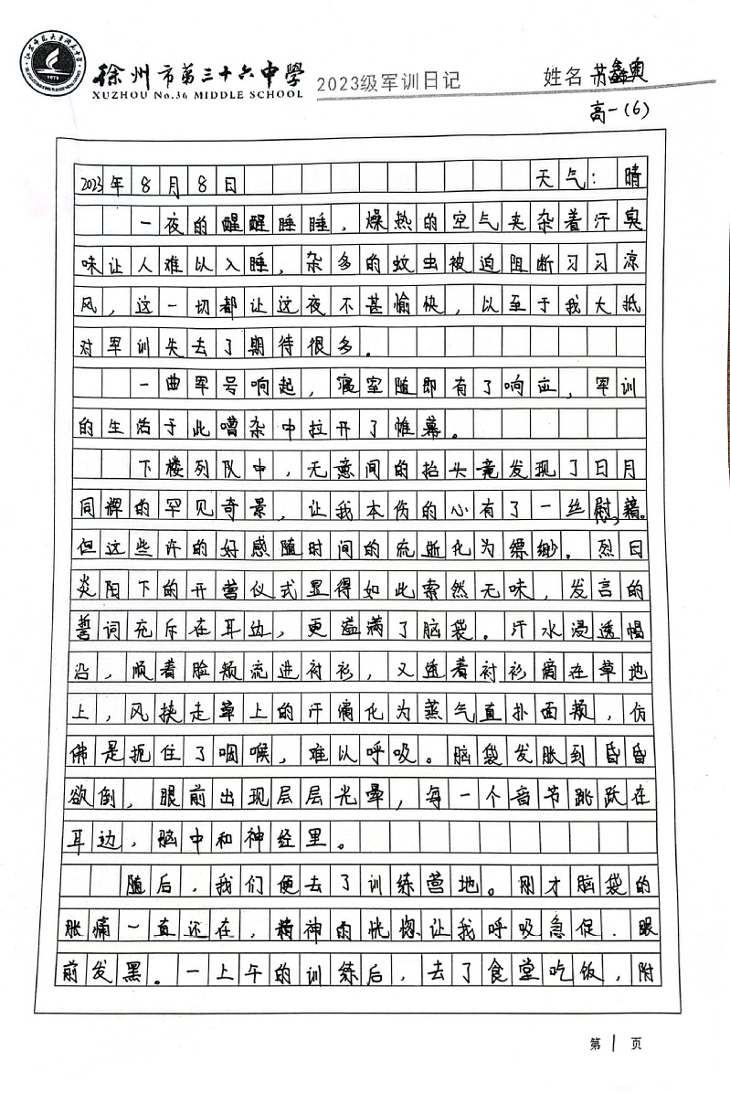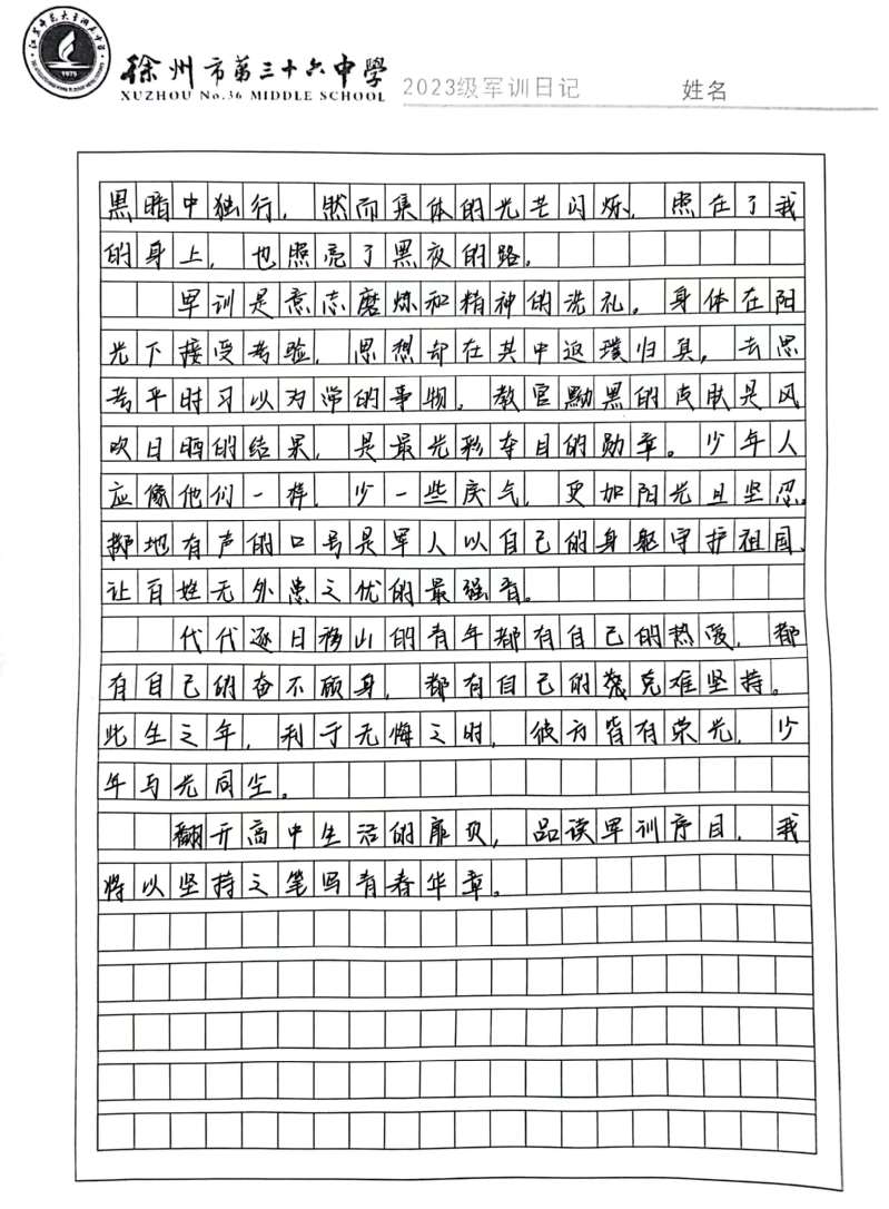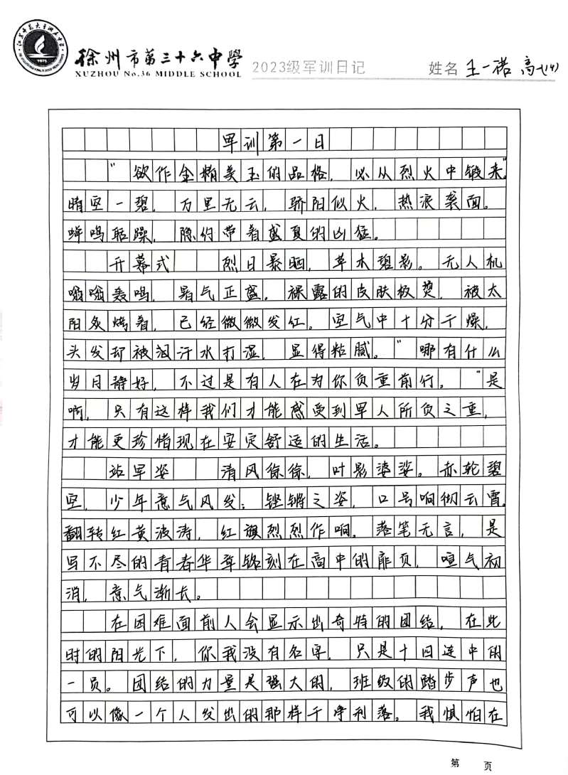 江苏师大附中高一新生军训日记(一)