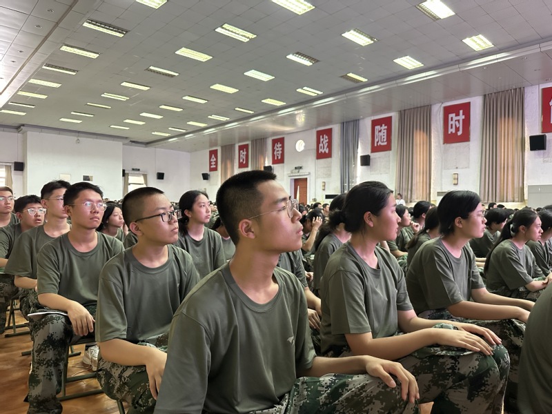 江苏师大附中800多名高一军训师生聆听了讲座,学生们坐姿端正,精力集中,表现出良好的精神状态。