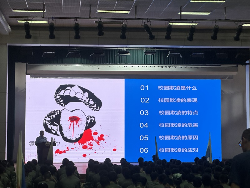 2023年8月12日上午,江苏师范大学附属中学邀请徐州市公安局泉山分局翟山派出所马洪亮警官,为正在军训的高一新生进行了以“反对校园欺凌,防范电信(网络)诈骗”为主题的法制安全讲座。
