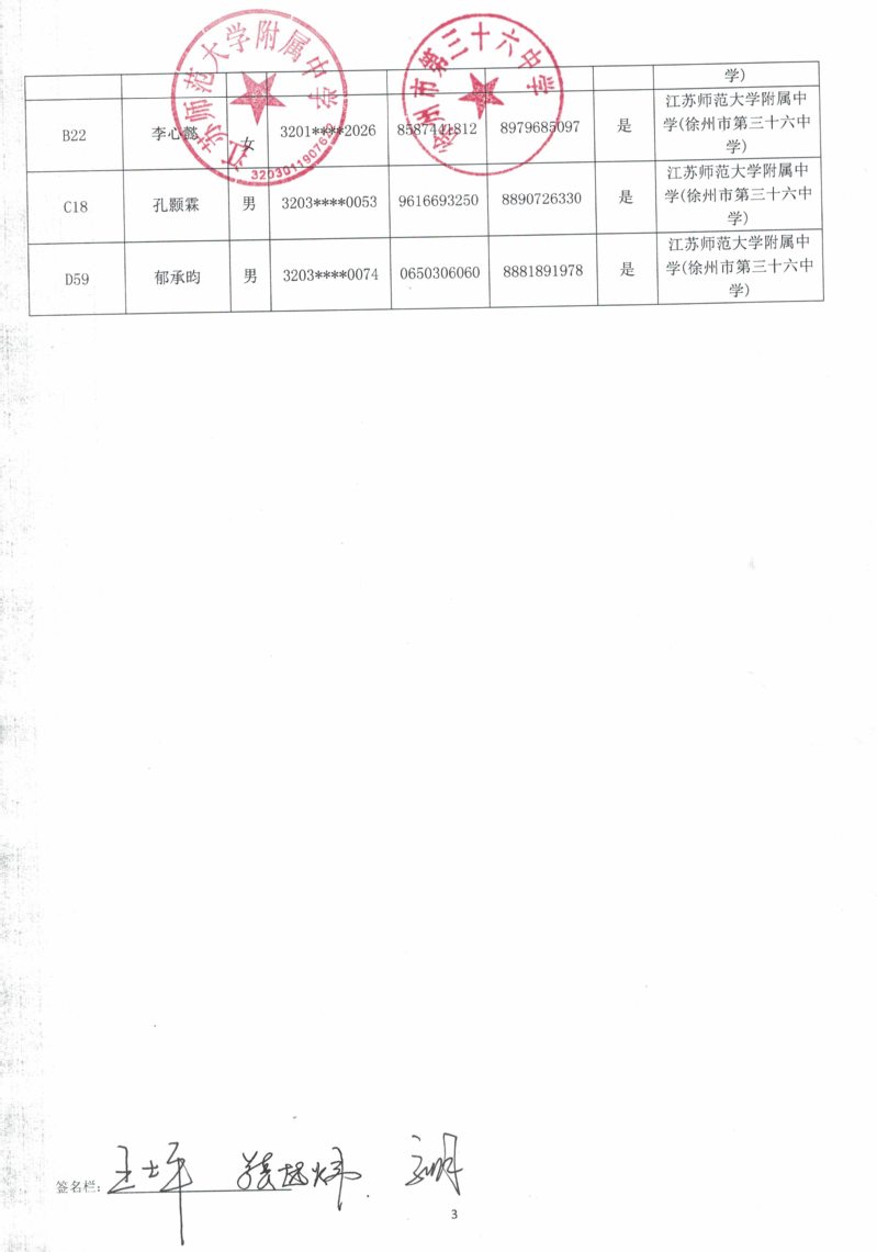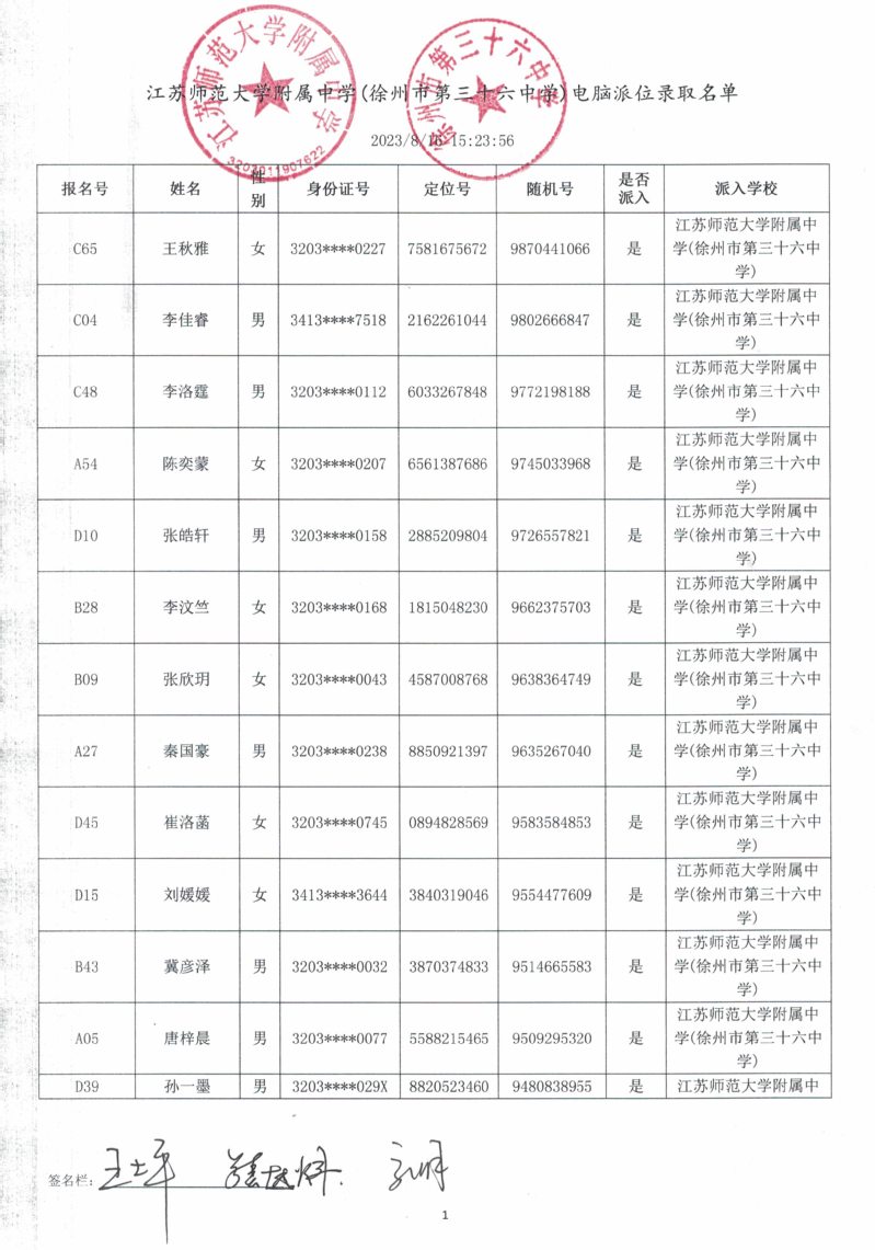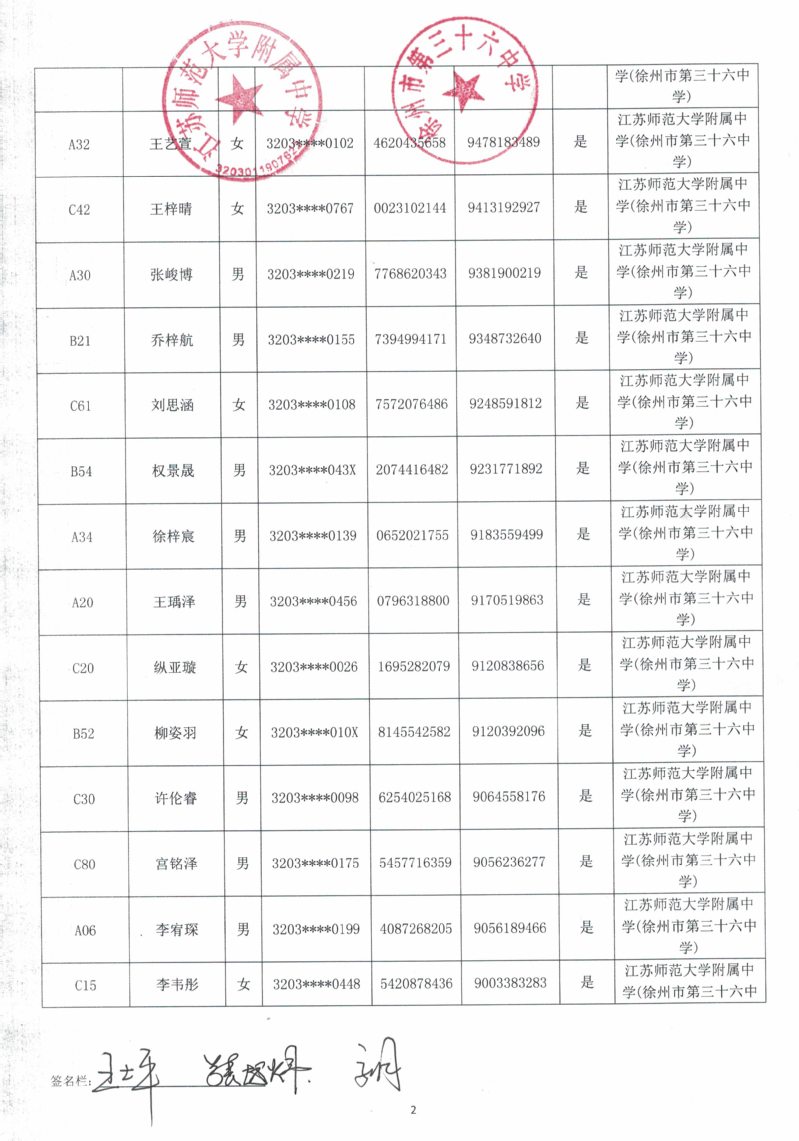 2023年江苏师范大学附属中学(徐州市第三十六中学)小学部电脑派位录取名单
