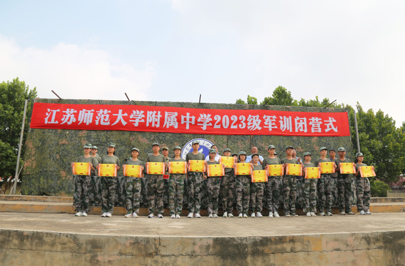 2023年8月15日上午9点,中国人民解放军太行劲旅大训练场,在雄壮欢快的进行曲声中,江苏师范大学附属中学2023级高一军训闭营式拉开帷幕。