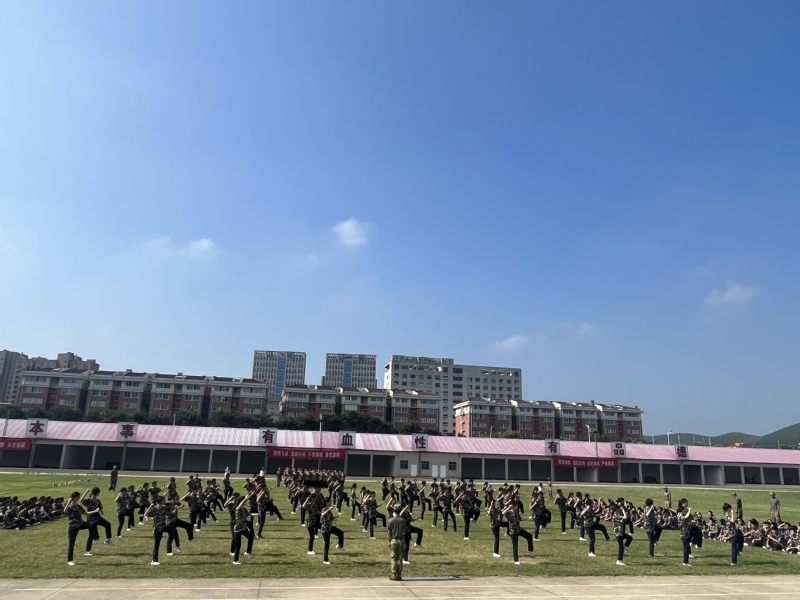 成果汇报的大幕拉开,活动渐入佳境。各区队依次上场,雄赳赳、气昂昂地向着主席台跑步前进,信心满满地展示国防教育成果。他们像一支支钢铁队伍,在教官的口令下,从容地进行着跑操、分列式、军体拳等表演,每一个动作都经历了千锤百炼,每一声口号都震耳欲聋。如炬的目光,整齐的步伐,规范的动作,响亮的口号赢得场上阵阵掌声。