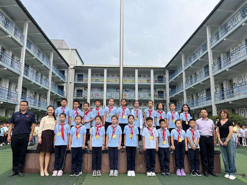 为引导同学们努力学习、报效祖国,小学部随后举行了2022-2023学年度第二学期“优秀学干”和“学习标兵”颁奖仪式。全校共有33名同学荣获“优秀学干”称号,110名同学获得“学习标兵一等奖”,209名同学获得“学习标兵二等奖”。江苏师范大学附属中学党委书记张焰、副校长翟澎、小学部校长高明、小学党支部副书记张雅楠为优秀学生们颁奖。
