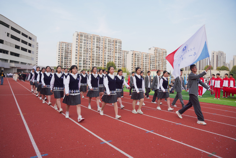 开幕式上,横幅高挂,人声鼎沸。踏着青春的步伐,伴着激昂的旋律,国旗方队、校旗方队、会旗方队、团体操方队、各年级运动员代表方队和裁判员代表方队排着整齐的队伍,喊着响彻云霄的口号,朝气蓬勃地依次从主席台前经过,一起奏响金秋校园的体育盛事华章。他们青春靓丽的衣饰装扮、优雅曼妙的舞姿、独具创意的队列变化、热情洋溢的口号和自信坚定的风采充分凸显了师大附中人拼搏奋进的精神风貌和各年级的文化特色,获得了师生们阵阵热烈的掌声!