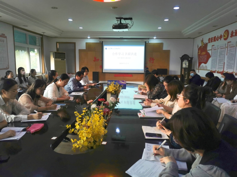为加强青年教师队伍建设,全面提升课堂教学质量,促进青年教师专业成长,实现相互学习、共同发展的目标,2023年11月1日下午,江苏师范大学附属中学初中部在行政楼三楼会议室开展了“合作学习 共研共进”主题教研活动。江苏师范大学附属中学党委书记张焰、初中部校长王永臻、初中部副校长刘莹出席活动。本次活动由省特级教师、正高级教师翟莉群主讲。