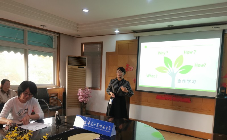 翟老师的讲座围绕合作学习“概念的理解、存在的问题、小组的建设、操作的细节”四个方面展开。她认为,合作学习应该是独立思考与合作交流的有效结合,教师一定要求学生先独立思考,再带着思考去合作交流;把更多的机会留给平时不爱发言的学生,鼓励他们敞开心扉,积极参与到小组合作中;对于学习有困难的学生,可以委以重任、优先发言、期待进步、个别辅导。