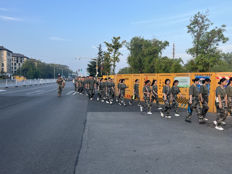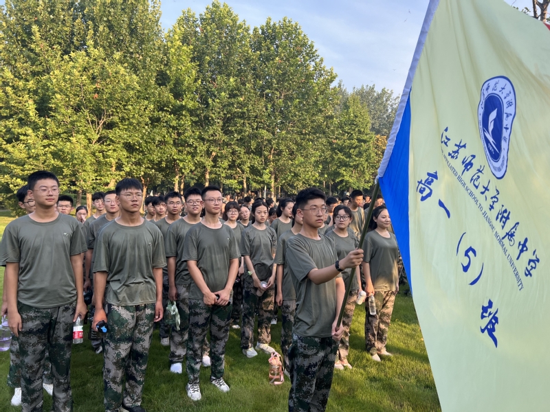 2023年8月12日清晨5:50,江苏师范大学附属中学高一新生怀着无比激动的心情在训练场整装待发。6:00整,只听一声号令,整齐划一的队伍从太行劲旅南门向小南湖进发,开启了军训拉练活动。