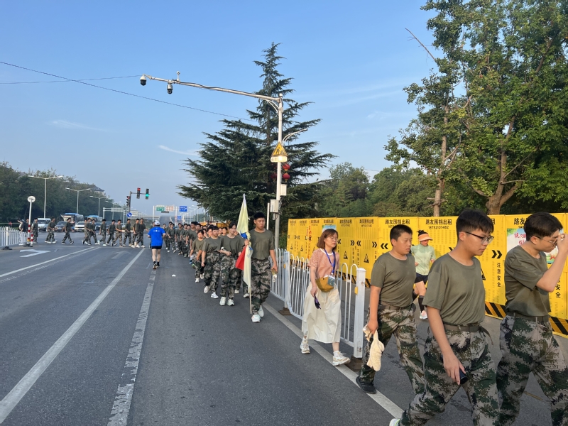 16个连队800多人浩浩荡荡、秩序井然地向目的地进发,一路军歌嘹亮,一路士气高昂!活动中太行劲旅的官兵在前方领路,为沿途交通安全提供保障;教官、老师、医护人员全程陪伴;每个连队都有教官在队首、班主任在队尾贴身关照。承训部队和学校为本次拉练做了详细的预案,并安排三辆保障车提供支持。
