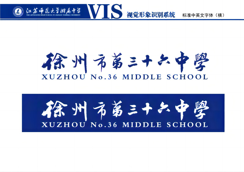学校的另一名称“徐州市第三十六中学”中文标准字体采用著名书法家仇高驰先生题名的手写体。