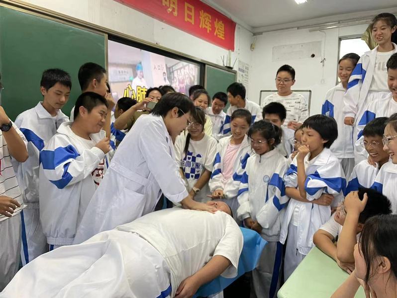 心肺复苏作为抢救生命的一种手段,意义重大。七9班李卓妈妈这套现场真人版的演示吸引了学生眼球,极大地激发了他们参与的热情。一张张笑脸,一个个跃跃欲试的身影,虽然动作还不够规范,但是强烈的求知欲让最腼腆的学生也摩拳擦掌。同时,李卓妈妈提醒同学们,良好的生活习惯能够让同学们在繁忙的学习中找到快乐和放松的方式,同学们也在一次次的参与中激发了对健康生活方式的感悟。
