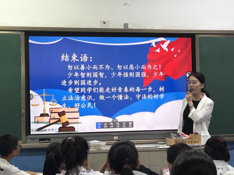 七2班李嘉和妈妈是苏大律师事务所的一名资深律师,是所在领域的专业人才,她的《校园普法小课堂》不仅专业性十足,还处处透露着温情和对孩子们成长的关注。她抑扬的语调、坚定的目光,如同一汪清泉在孩子们的心里缓缓流淌。“少年智则国智,少年强则国强,少年进步则国进步”,李嘉和妈妈寄语同学们,希望同学们走好青春的每一步,树立法治意识,做一个懂法、守法的好学生、好公民。