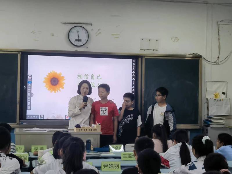 七6班杨沐熹姨妈在一阵又一阵热烈的掌声中,迅速和孩子们打成一片。她请一名同学上台分享心得,并通过一个“跑步”测试,让同学们懂得:做自己的主人,要抓住时机,主动赢得机会!通过“你相信自己是百万富翁吗”话题的分享、尼克·胡哲的演讲以及乒乓球和鸡蛋落地测试等活动,她鼓励同学们培养积极的心态,以应对挫折和困难,帮助他们建立自信心和自尊心,让他们相信自己可以克服任何困难;同时也让同学们明白失败是成长的一部分,鼓励他们从失败中成长。