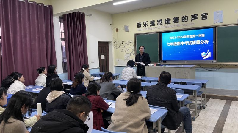 为更好地总结前半学期教育教学工作,进一步强化教学管理,不断提高教学质量,2023年11月21日下午,江苏师范大学附属中学七年级召开2023-2024学年第一学期期中考试质量分析会。会议由七年级胡华坤主任主持,师大附中初中部王永臻校长、刘莹副校长及全体七年级任课教师参会。