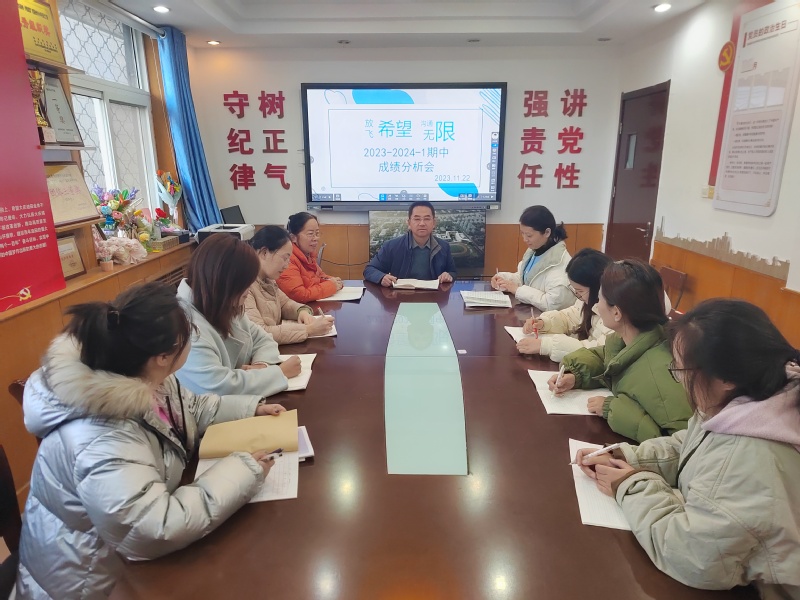 教学质量是学校的生命线,教与思结合是教学质量提升的前提。为全面总结期中考试的得与失,找准教育教学工作中存在的问题和不足,更好地提升下一阶段的教学工作,2023年11月22日下午,江苏师范大学附属中学九年级召开2023-2024学年第一学期期中质量分析会。会议由九年级夏菱菱主任主持,江苏师大附中翟澎副校长、初中部王永臻校长、刘莹副校长、马艳林副校长及九年级全体任课教师参会。