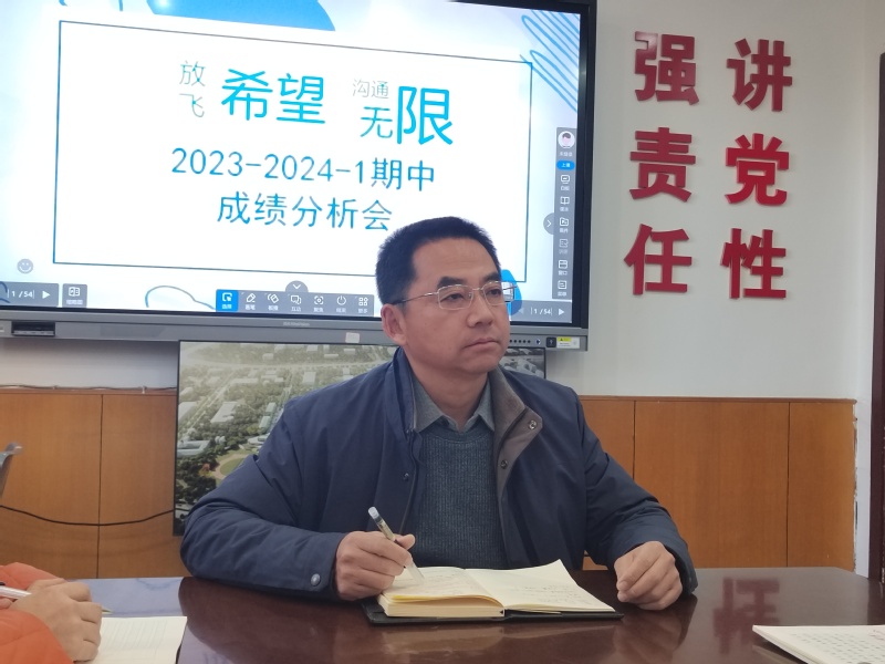 教学质量是学校的生命线,教与思结合是教学质量提升的前提。为全面总结期中考试的得与失,找准教育教学工作中存在的问题和不足,更好地提升下一阶段的教学工作,2023年11月22日下午,江苏师范大学附属中学九年级召开2023-2024学年第一学期期中质量分析会。会议由九年级夏菱菱主任主持,江苏师大附中翟澎副校长、初中部王永臻校长、刘莹副校长、马艳林副校长及九年级全体任课教师参会。