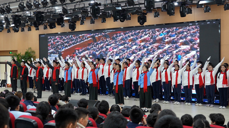 同学们的声声诵读气势如虹,以扎实的功底、真挚的情感、声情并茂的演绎,引起了在座师生及家长代表的共鸣,赢得阵阵掌声。同学们以独特创意的舞台表演形式,铿锵有力的诵读,为我们带来了一场视听盛宴。