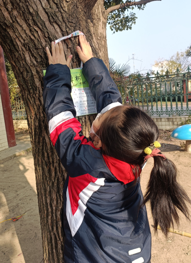 花草树木是人类的朋友,走出家门,处处都有它们的身影,默默无闻地装点着我们的城市。走进校园,看到满眼的绿色,让人心生喜爱。本学期,我们三年级的老师和同学们一起把校园中的树木作为研究学习对象,通过观察、记录、测量、查阅资料等多种手段,涉及到语文,数学,英语,美术等科目。从多种渠道认识了解校园内的树木,以“我给小树办身份证”为主题开展跨学科项目化学习活动。