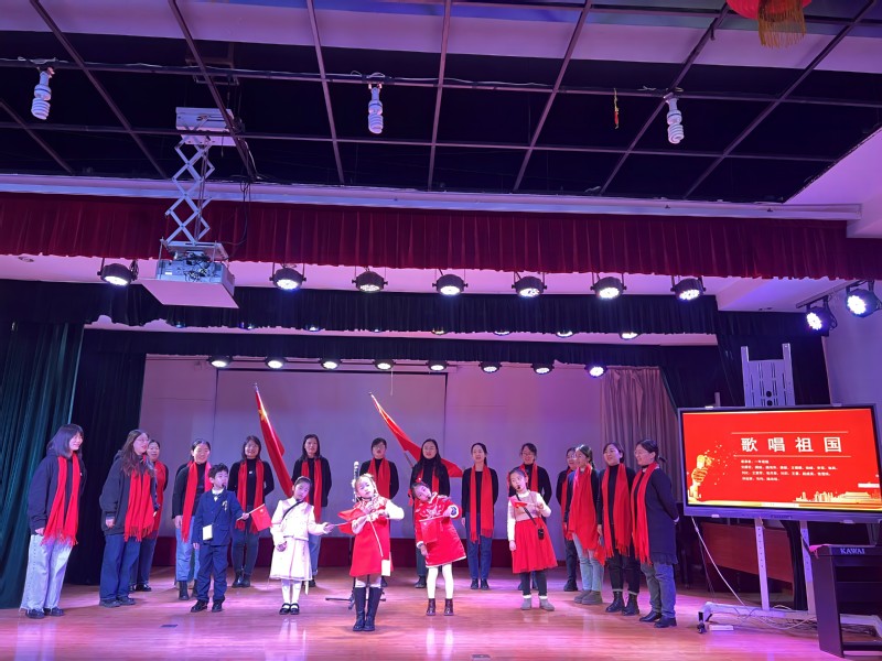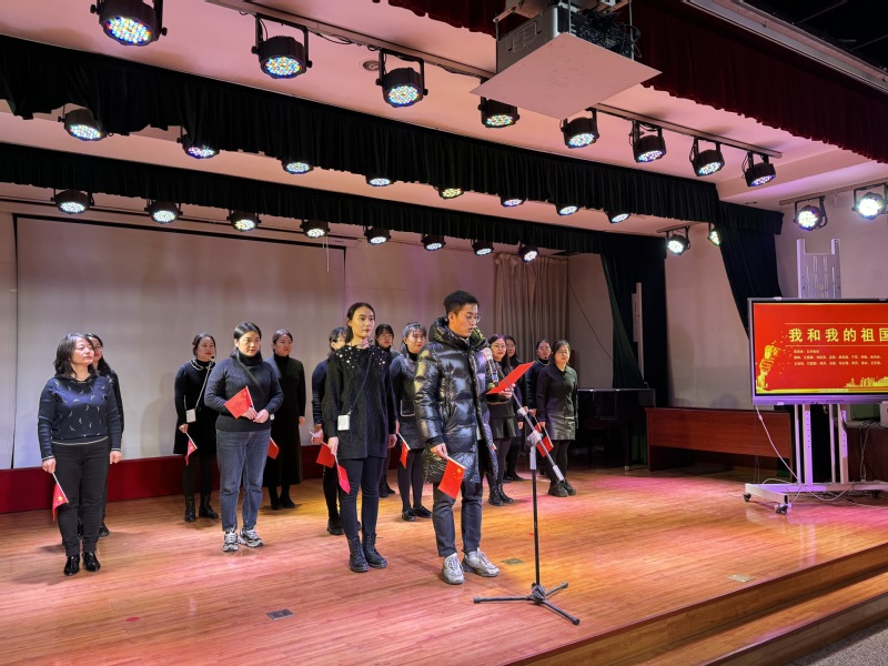 在合唱环节中,各年级组的老师们纷纷登台献艺,联袂演唱了《今天是你的生日中国》、《没有共产党就没有新中国》、《我和我的祖国》、《我们走在大路上》、《歌唱祖国》、《军港之夜》、《在希望的田野上》等经典红歌曲目。