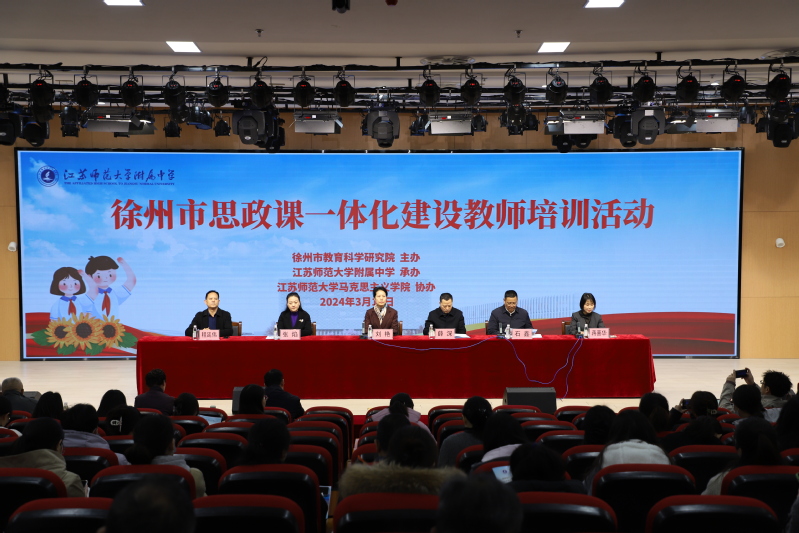 为加强大中小学思政课建设建立思政课教学资源共建共享平台,全方位、立体化推进“三新四行动”提升思政课教师的专业素养和课堂教学质量3月18日,由徐州市教育科学研究院主办、江苏师范大学马克思主义学院协办、徐州市第三十六中学承办的徐州市思政课一体化建设教师培训活动在我校2号楼报告厅举行,活动采用线下参会与线上直播相结合的方式进行。市委教育工委副书记刘艳,江苏师范大学马克思主义学院党委书记薛深,市教科院副院长程廷伟,江苏师范大学附属中学党委书记张焰、校长石鑫出席了培训活动,活动由市教科院道德与法学科教研员蒋喜华主持。市直属学校、各县区教研员、思政课骨干教师及江苏师范大学马克思主义学院部分师生等300人参加了此次活动。