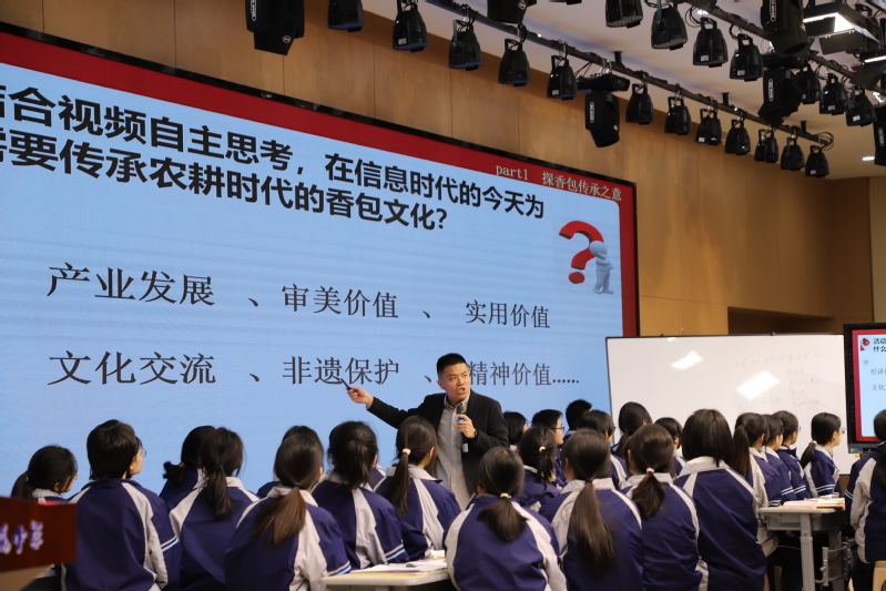 搭建“一体化”平台,共绘育人“同心圆”。在展示课环节,我校小学部老师周楠带着来自四、五、六三个年级的33位小朋友《徐州名片我打造》,创新项目化学习翻转课堂,打造学生理想的徐州名片。初中部时雨菲老师带着初中部的学生重走丝绸之路,寻找文化印记,《延续文化血脉》。高中部高爱松老师围绕徐州非物质文化遗产,探香包传承之意、寻香包传承之策,在小组学习、师生交流中《弘扬优秀传统文化,建设文化强国》。三节课精彩纷呈、高潮迭起、掌声不断。