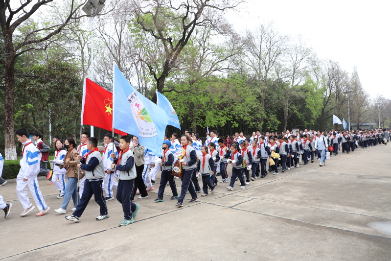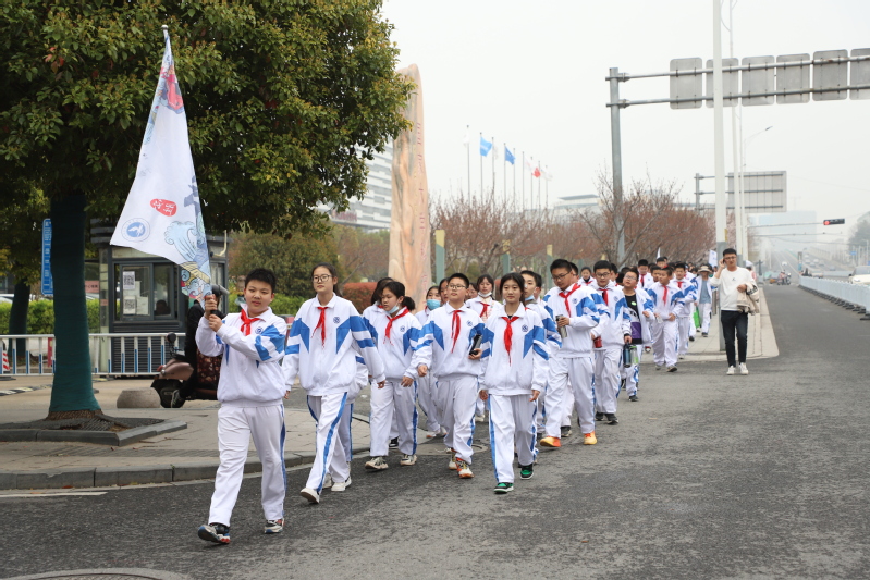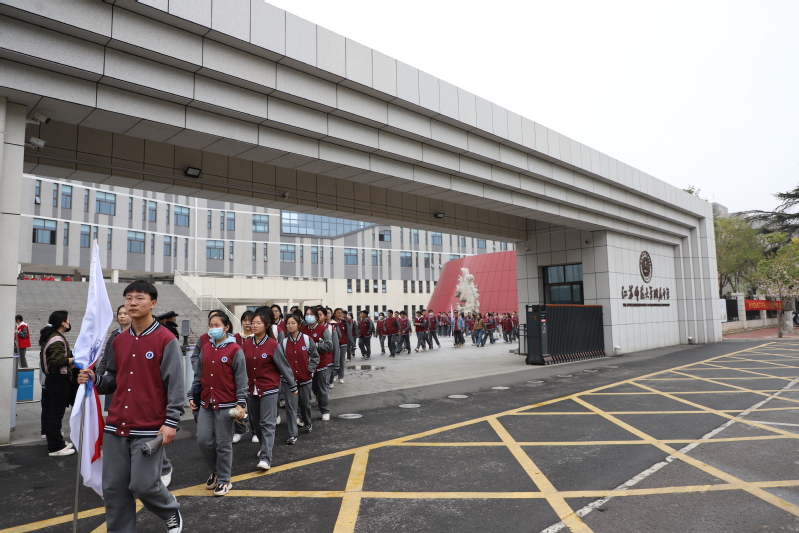 三个学部的学生从学校徒步行进,队伍整齐,秩序井然,彰显了附中学子文明有礼的精神风貌。