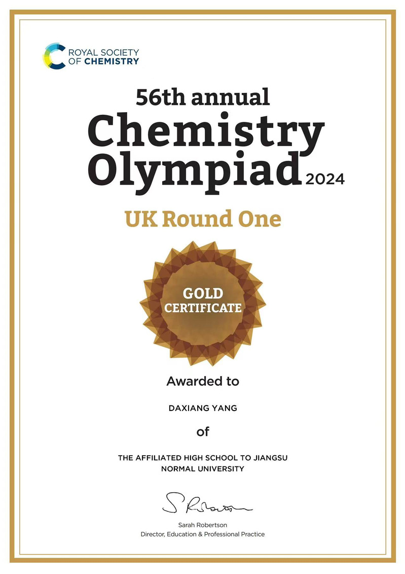 喜报——江苏师大附中学子喜获“英国化学奥林匹克竞赛”金奖