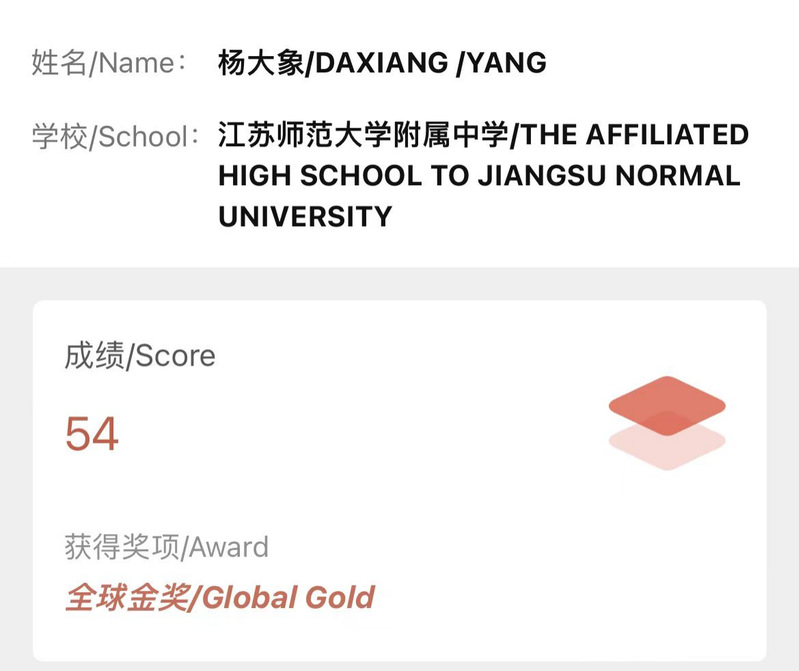 作为中国国籍学生其成绩参照英国获奖分数线决定是否获奖,而金奖的获奖仅占总获奖人数的8%,实际获奖概率不足0.2%。