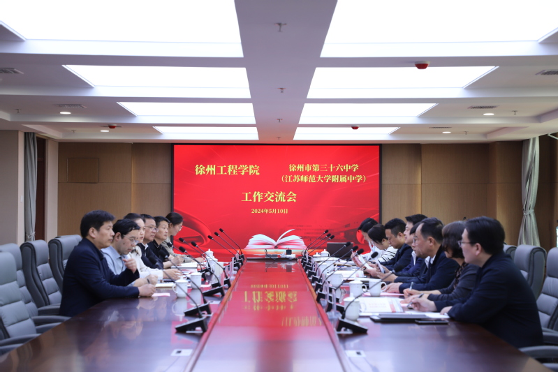5月10日上午,徐州工程学院党委书记刘洋一行莅临我校,就进一步加强两校合作、共同打造优质生源基地进行深入交流。徐州工程学院党委常委、副校长王逢博,党委常委、组织部长涂宝军,学报编辑部主任宋言东,物理与新能源学院书记郝思瑾,师范学院院长马衍、副书记李艮、办公室主任齐钦,体育学院副书记陈益群,我校党委书记张焰、校长石鑫、副校长张世栋、党政办主任吕伟波、高中部教务处主任李阳、小学部语文教师刘果等出席交流会。