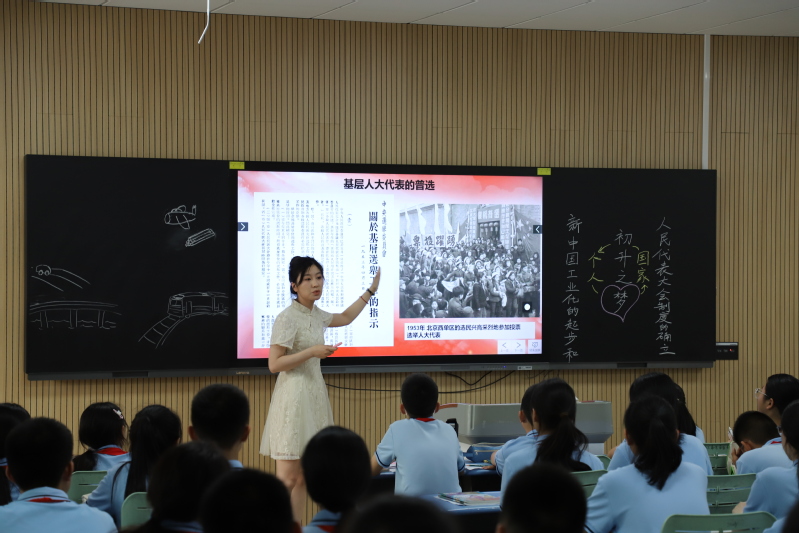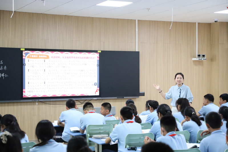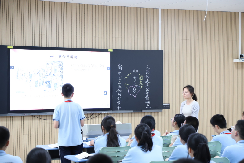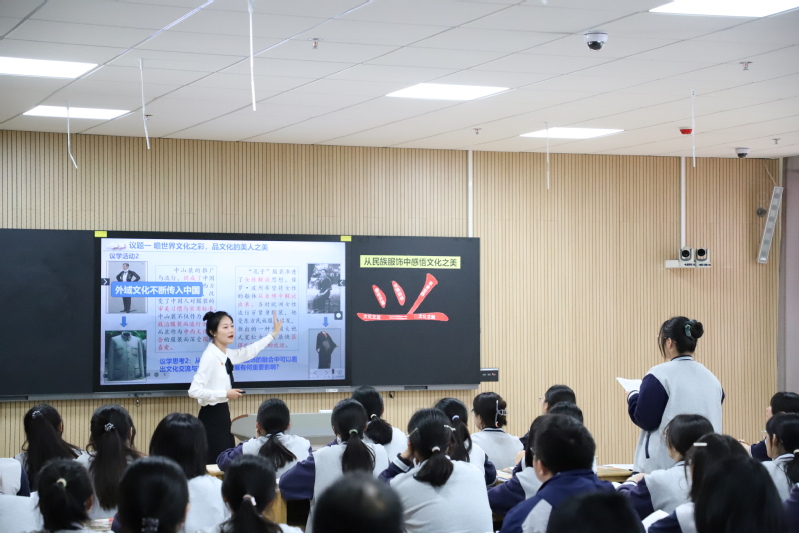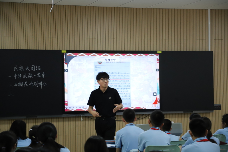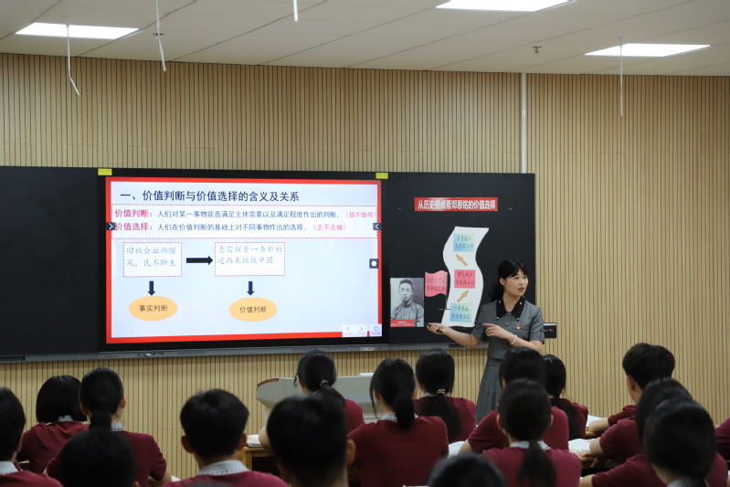 在展示课环节,我校初高中政治、历史老师协同教学。李梦老师和赵传蕾老师以服饰为线索介绍中华文化从古至今的发展,展示中华文化之美和强大生命力,博大文明、历史悠久的中华文化是我们中华民族的自信之基、力量之源;李丹阳老师和邵梦云老师跨越时空,串联五四运动和中国共产党成立的相关史实,在历史拐点看邓恩铭的价值选择和价值判断,激励当代学子坚定信仰、承担责任;乔倩、李跃东两位老师以“徐州——奎屯”两地青少年鸿雁传书活动为切入点,充分挖掘学生身边的课程资源,将民族区域自治制度的历史渊源与各民族共同繁荣的现实表现有机融合,激发学生爱国情操;赵燕、姜南两位老师以“共和国的初升之梦”为主题,以全国著名劳动模范、第一届全国人大代表王崇伦的人物活动为主线,立意深远,衔接自然。四节展示课形式新颖、视角独特、精彩纷呈。