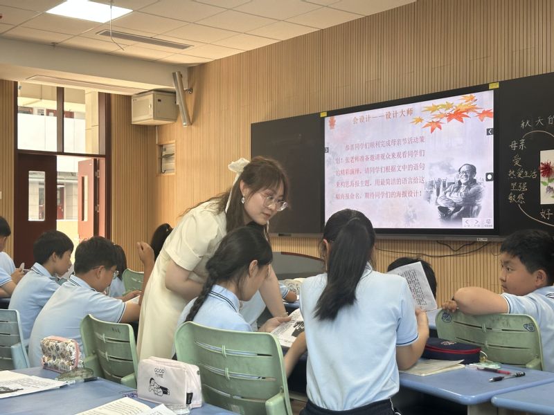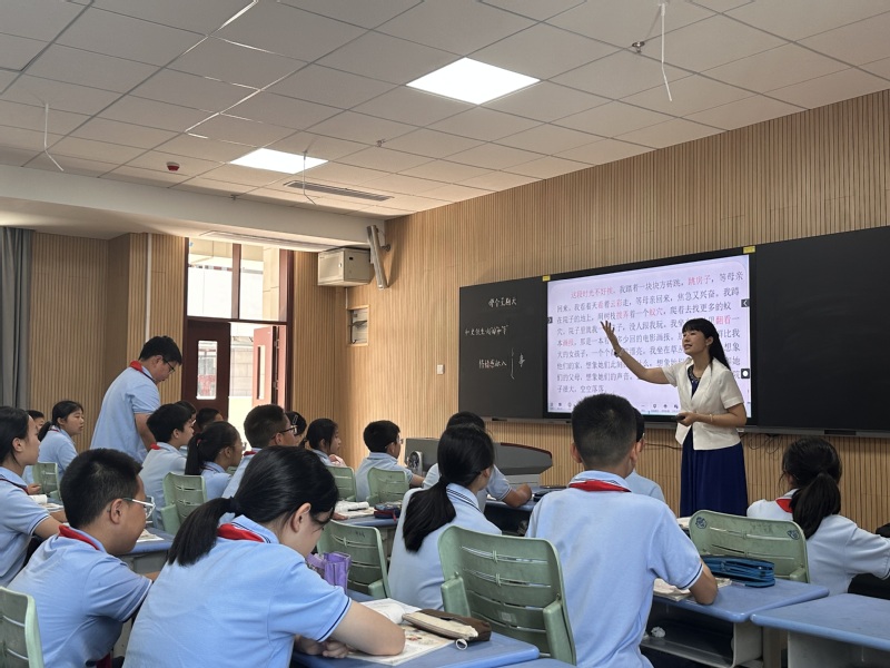 活动首先由六位老师给大家送上了扎实高效的衔接课教学展示。语文组以“走近史铁生”为主题,小学部王宝娟老师执教《那个星期天》一课,以“盼”和“等”为主线,从课文阅读迁移到习作,让学生们学会融情于景、事、人的文学方法;初中部张硕老师则以《秋天的怀念》一课引导学生们感知史铁生成年后对母亲更为深沉的爱,并通过丰富多样的情境设置,深化学生们对生命的理解。数学组围绕“图形的运动”开展衔接课程,小学部朱影老师以俄罗斯方块为情境,将平移、旋转、轴对称(翻折)置于一体,帮助学生在操作中感受到图形运动的价值和意义;初中部张贝习老师让学生们以直尺和量角器展开活动,侧重发展学生的几何直观与空间观念,并渗透转化思想。六年级的学生们跟着小学部英语滕莹莹老师学习了六年级下册的Summer holiday plans一课,又跟随初中部赵梦辰老师学习了七年级下册课文Neighbours,感受了不同的文本载体、教学方式和不同学段老师对于相同语法项目“一般将来时”的授课内容。