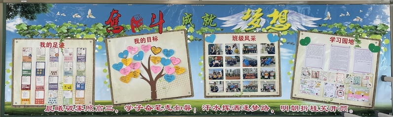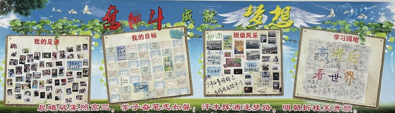 高中三个年级在板报的设计方面各有侧重,高一以“梦想启航,共绘未来”为主题;高二以“厉害了,我的班”为主题;高三以“奋斗成就梦想”为主题,旨在通过学生们的巧手与创意,展现新学期的活力与希望。